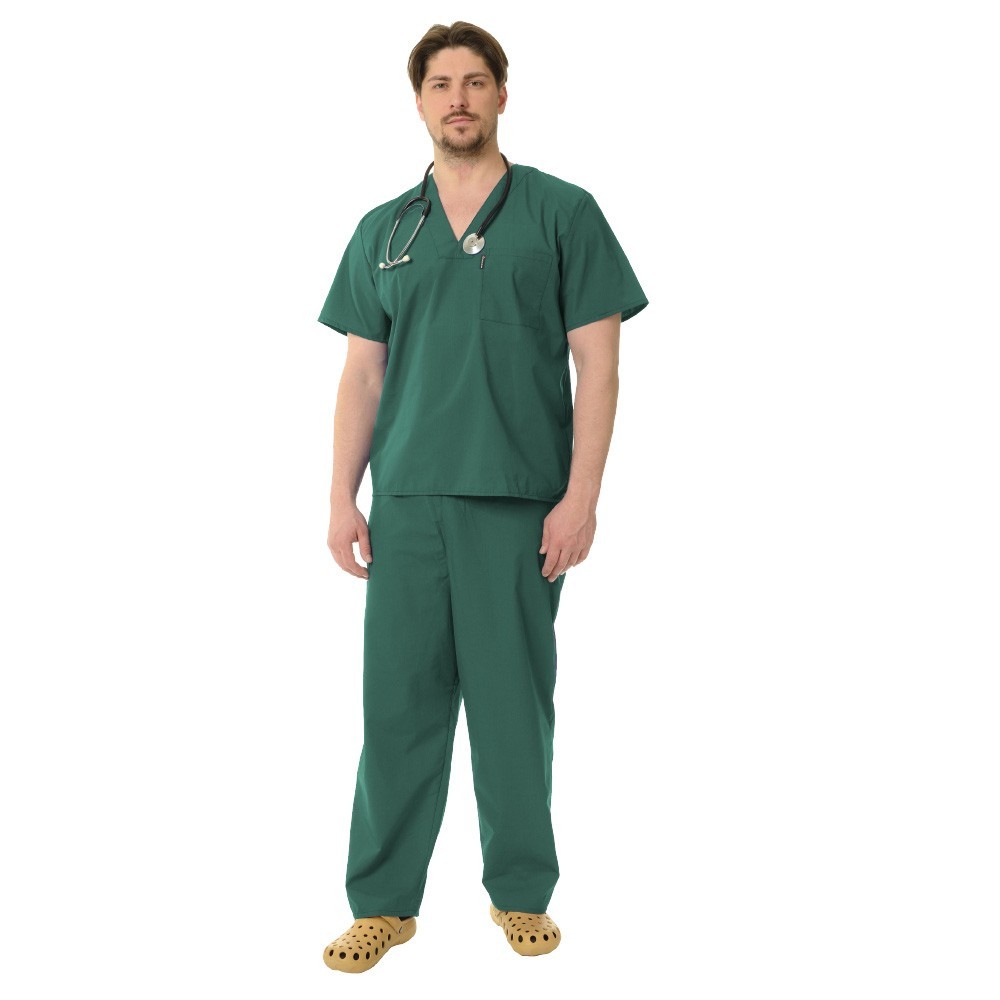Костюм медицинский «Хирург» представляет собой усовершенствованную модель униформы для докторов и медперсонала, состоящую из удлиненного блузона с короткими рукавами и прямых классических брюк.