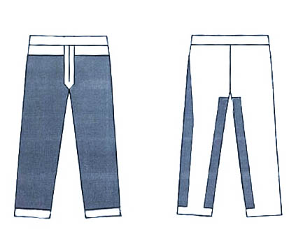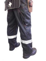 Конструктивно защита представляет собой пакет материалов с пилостойким трикотажем, эффективно защищает от порезов пилой, работающей на скорости 20 м/с.