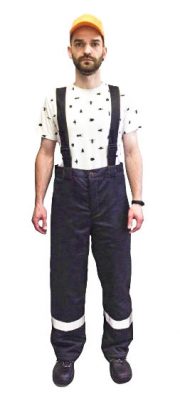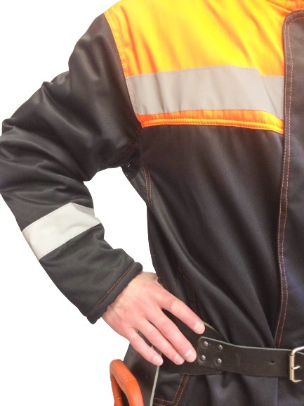 Область защиты куртки и полукомбинезона соответствует стандарту и охватывает: верх куртки и рукавов, воротник, переднюю часть брюк с переходом на заднюю сторону по боковым и шаговым швам.