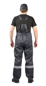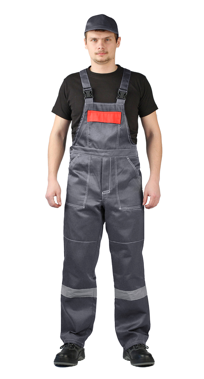 Полукомбинезон: отрезная грудка на притачном поясе;  регулируемые по длине бретели;  нагрудный карман с защитным клапаном на контактной ленте “липучка”; объемные боковые накладные карманы.