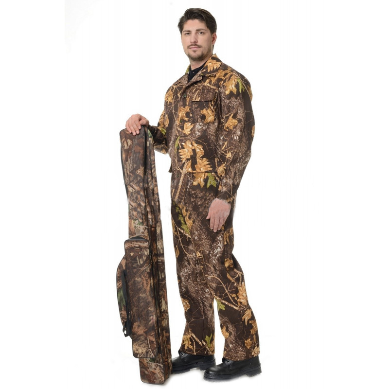 Летний удобный костюм мужской«ПОЛЕВОЙ» в камуфлированном окрасе — «темный ле» с курткой и брюками прямого силуэта будет отличным спутником в полевых работах и на охоте.
