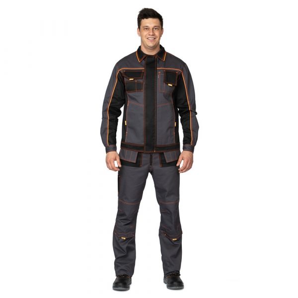 Костюм мужской Бренд 2 (серый/чёрный) (куртка и полукомбинезон)