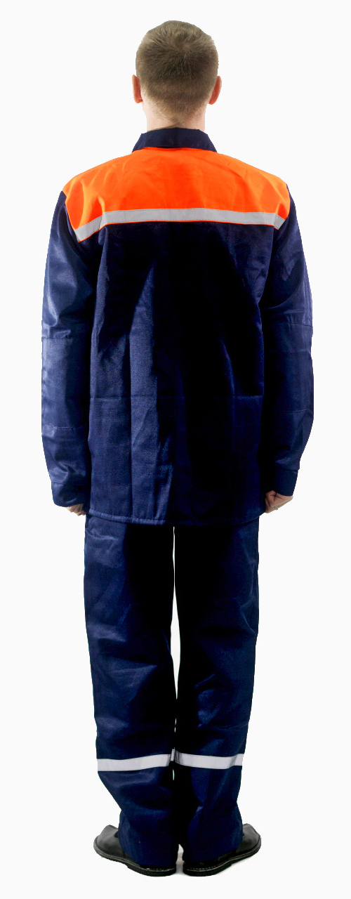 Костюм усиленный «СТАНДАРТ-2» куртка/полукомбинезон, тёмно-синий с оранжевой отделкой