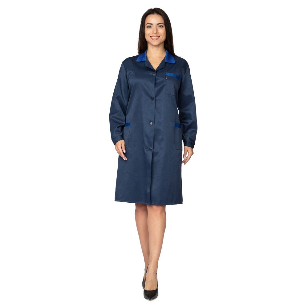 Халат рабочий женский «ТЕХНОЛОГ»- тёмно-синий/василёк