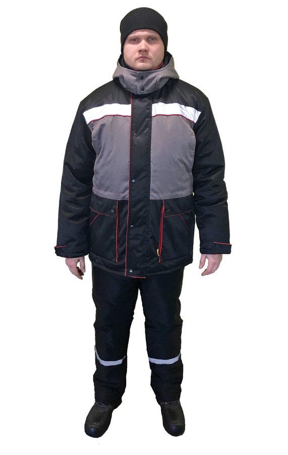 Костюм утепленный «Комфорт» (куртка+п/комб), черно-серый