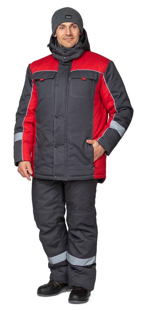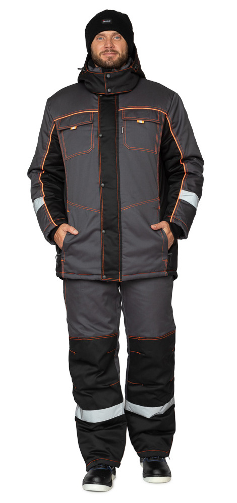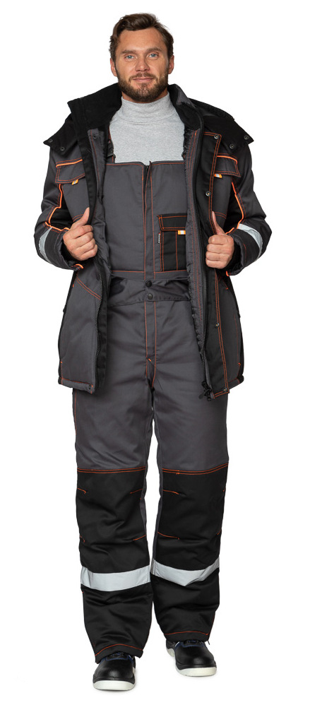 Костюм утепленный «Бренд К» — это модель, состоящая из куртки с капюшоном и полукомбинезона, выполненных в прямом крое, отличается хорошими эксплуатационными характеристиками. Рабочий зимний костюм — универсальный вариант, который подходит для производственной, коммунальной, строительной и других сфер.