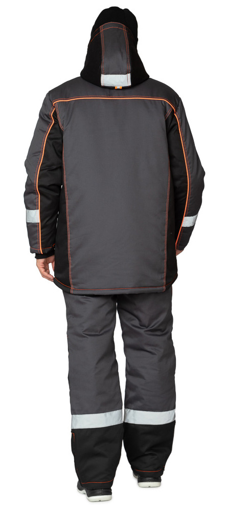 Капюшон: утеплённый, пристегивается к горловине на молнию, по лицевому вырезу регулируется с помощью шнура с фиксаторами. По глубине капюшон регулируется в затылочной части с помощью хлястика на пряжке. Подбородочная часть капюшона застегивается на кнопки. Увеличенный объём капюшона позволяет надевать его поверх головных уборов, касок и шлемов.
