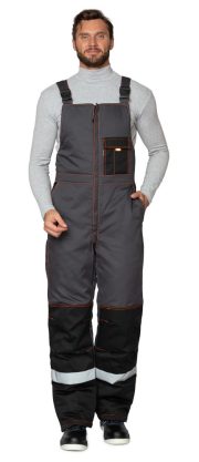 Полукомбинезон: прямого кроя, с застёжкой на двухзамковую молнию, закрытую притачной планкой. Бретели регулируются застёжками-фастексами. Плотность прилегания к талии регулируется поясом с резинкой. На коленях анатомические вытачки. По низу брючин в боковых швах расположены разрезы, застегивающиеся на молнию. Ширина разреза регулируется вставкой из основной ткани. Это позволяет удобно надевать и снимать обувь за счет возможности увеличить ширину нижней части брюк.
