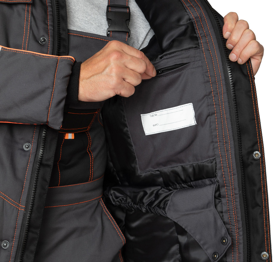 Куртка: утеплённая, с центральной застёжкой на двухзамковую молнию. Молния закрыта с обеих сторон ветрозащитными планками: верхняя центральная планка на кнопках, утеплённая синтепоном, нижняя — не утеплённая. Подкладка рукава с внутренними трикотажными манжетами. Воротник-стойка, нижний воротник из флиса. Для дополнительной защиты от ветра расположен внутренний ветрозащитный пояс с фиксацией на кнопки по линии талии, низ ветрозащитного пояса на эластичной ленте. На внутреннем кармане расположена именная этикетка ФИО.