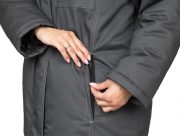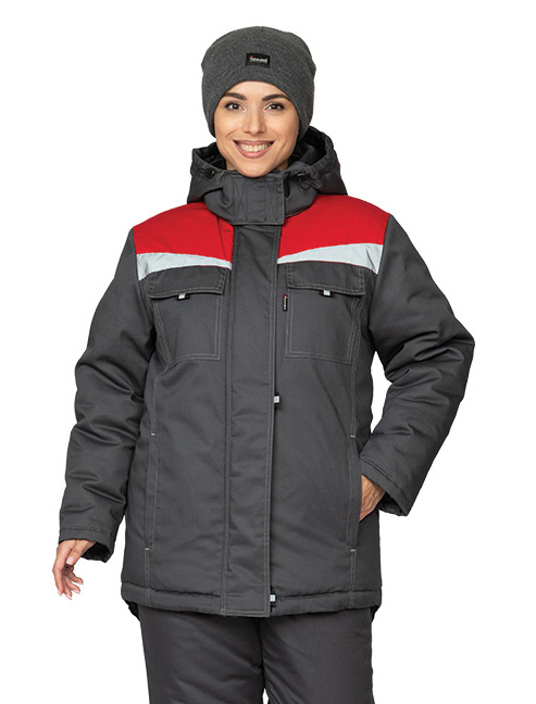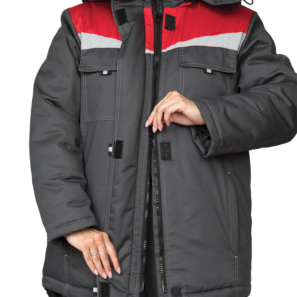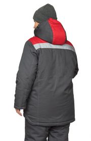 Куртка: прямого силуэта с притачной утеплённой подкладкой с центральной застёжкой на двухзамковую молнию, с утеплённой ветрозащитной планкой сверху молнии на левом борту и дополнительной ветрозащитной планкой под молнией на правом борту. Спинка с кокеткой и рельефами, удлинённая. Объём куртки по низу регулируется кулиской с эластичным шнуром и фиксаторами. Рукава втачные, двухшовные, подкладка рукава с манжетой. Воротник-стойка. Внутренний воротник из флиса.