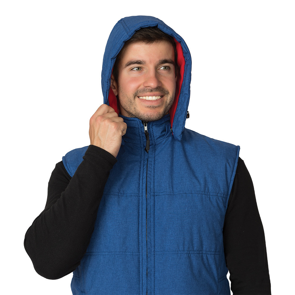 Жилет мужской утепленный — стильная функциональная модель жилета для мужчин с улучшенными характеристиками кроя и фурнитуры. Ткань и новое сочетание цвета придаёт изделию оригинальный внешний вид. Съёмный капюшон с регулировкой по объёму и глубине, воротник-стойка и флисовая подкладка обеспечат удобство при эксплуатации. Такую модель жилета с капюшоном можно использовать в качестве верхнего слоя одежды или в качестве дополнительного утепляющего слоя одежды, если отстегнуть капюшон.