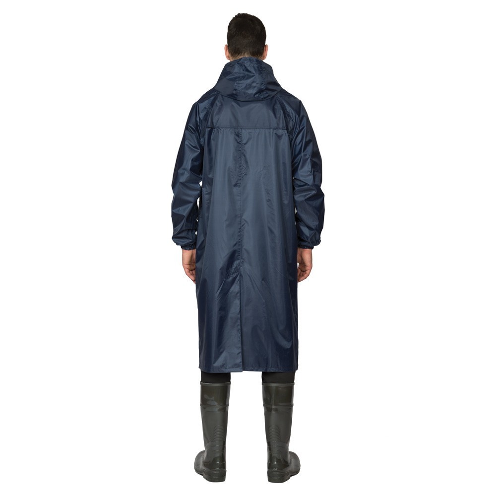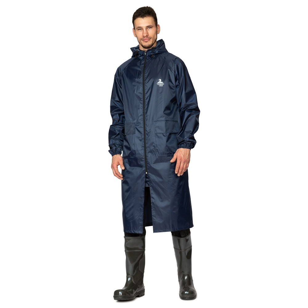 Плащ для защиты от дождя  с рукавами реглан, с притачным капюшоном, с центральной застежкой на молнию, с внутренней ветрозащитной планкой под молнию.