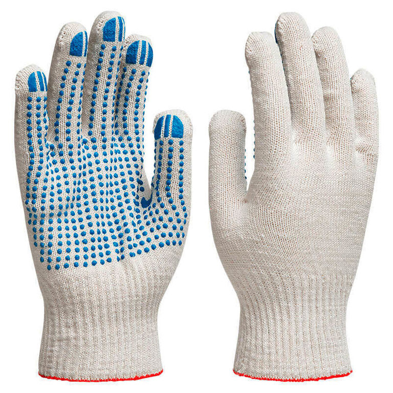 Перчатки с точечным ПВХ-покрытием наладонника – усовершенствованный вариант простых вязаных х/б перчаток.