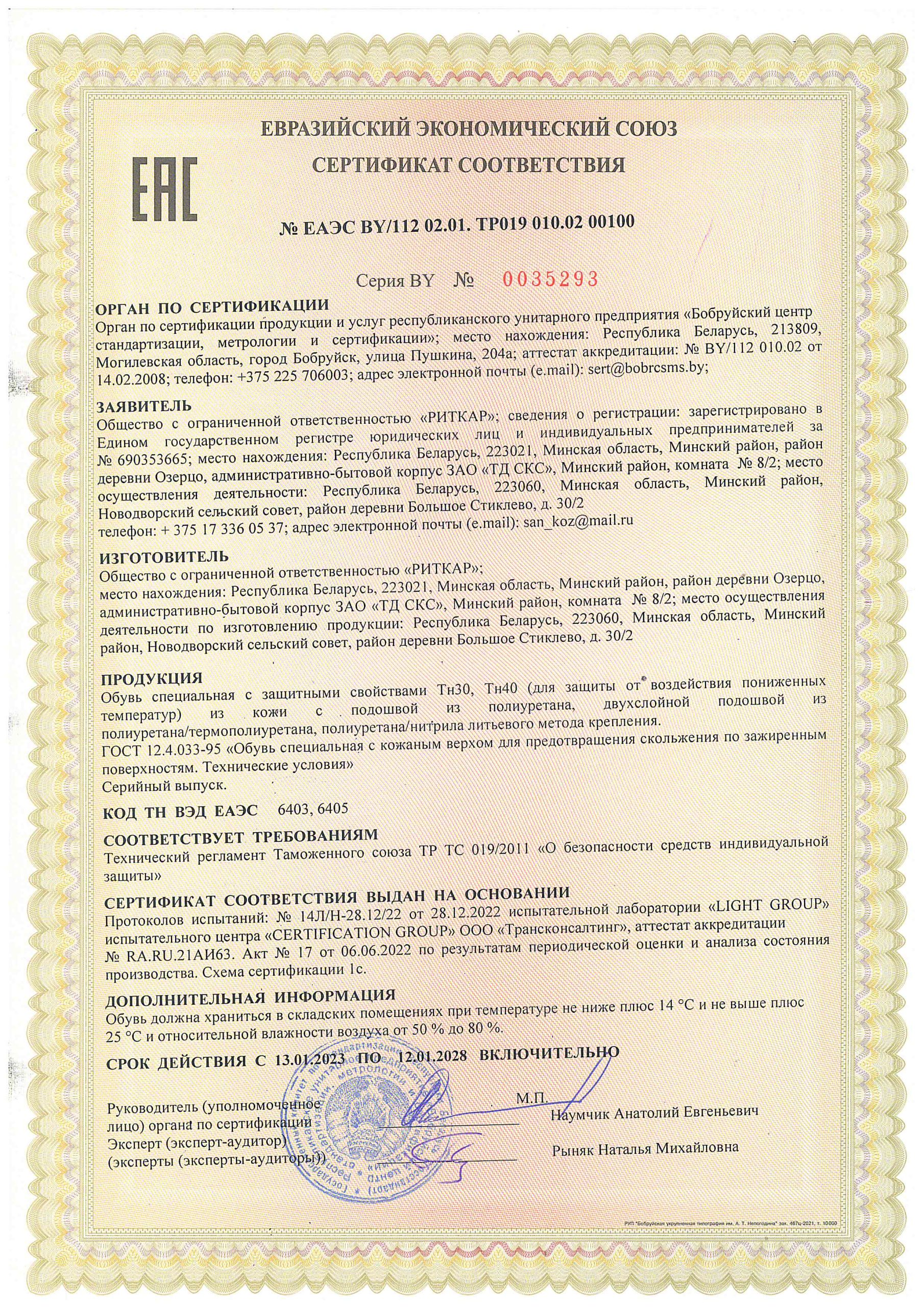 Сертификат соответствия Тн30 Тн40