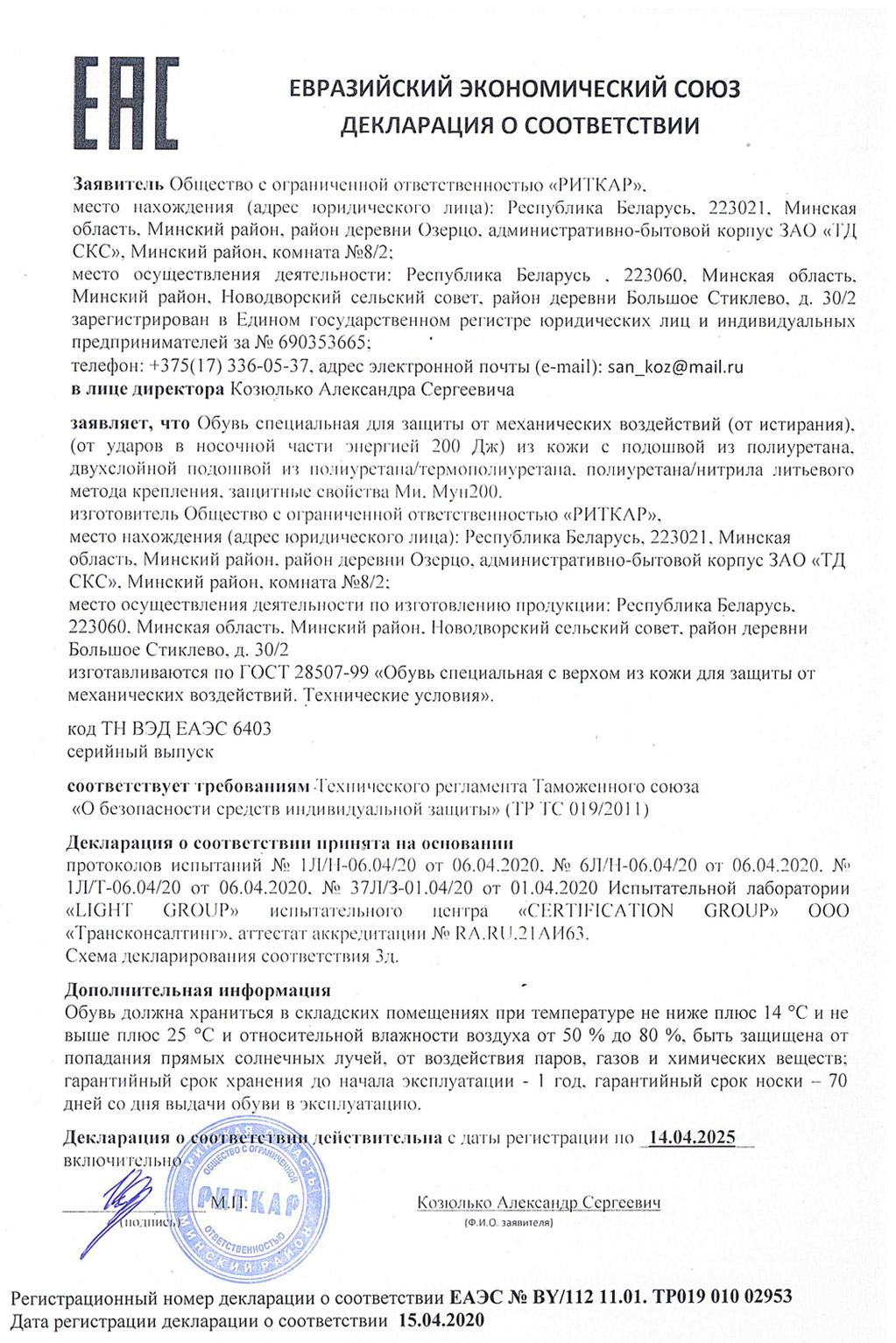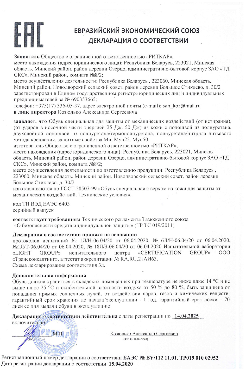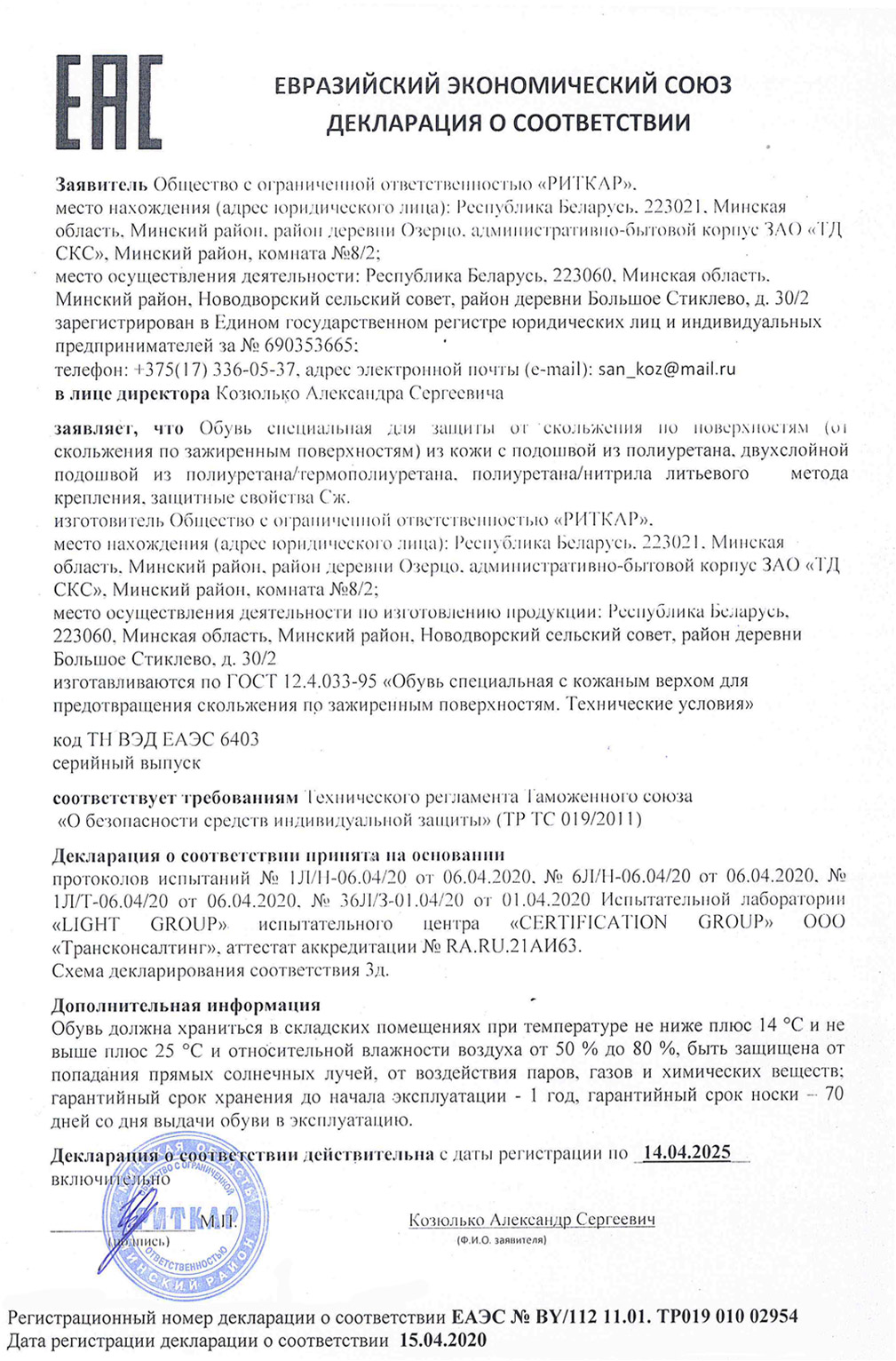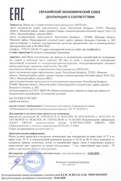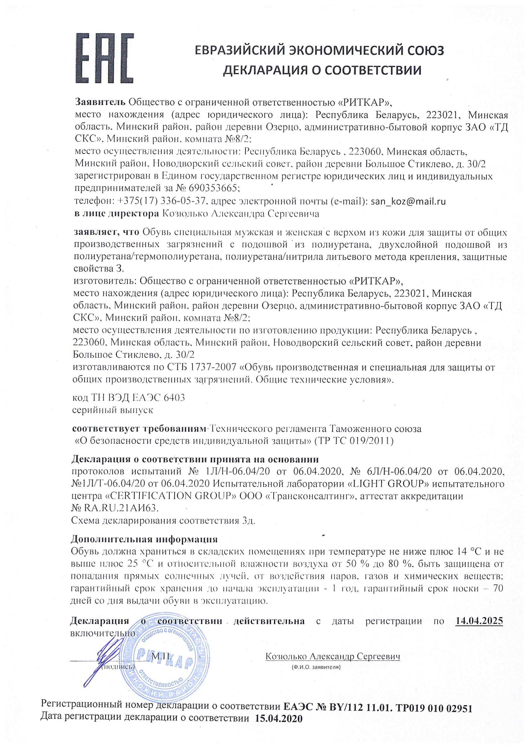 Декларация о соотвествии Сж