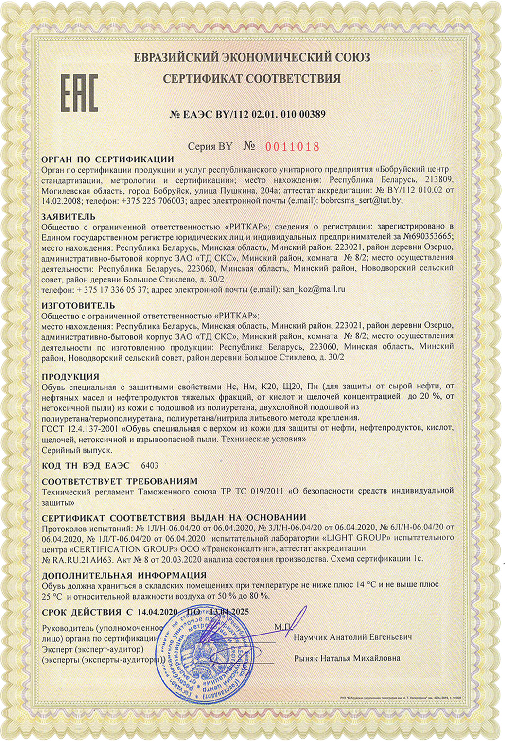 Сертификат соотвествия Нс Нм К20 Щ20 Пн
