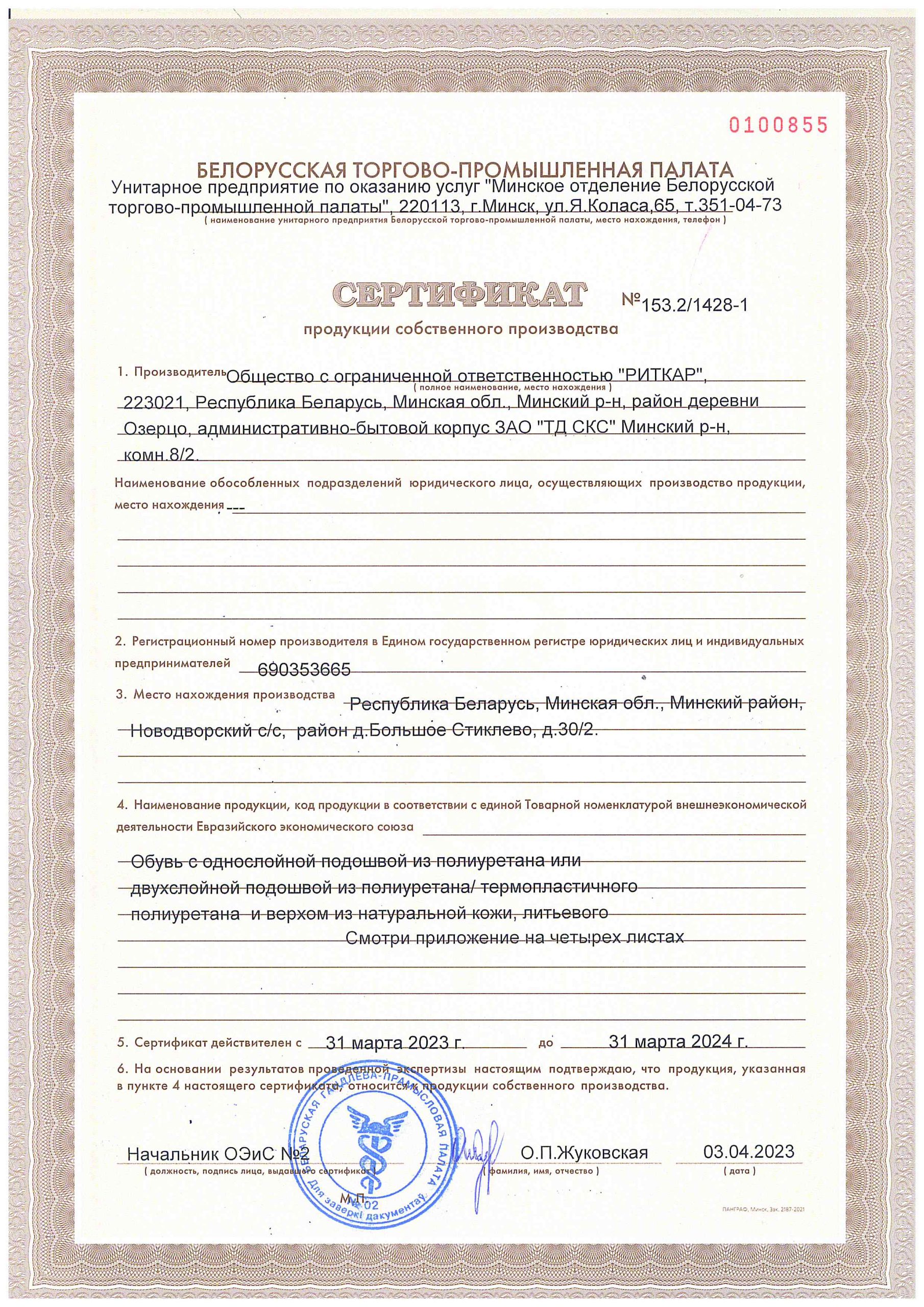 Сертификат продукции собственного производства