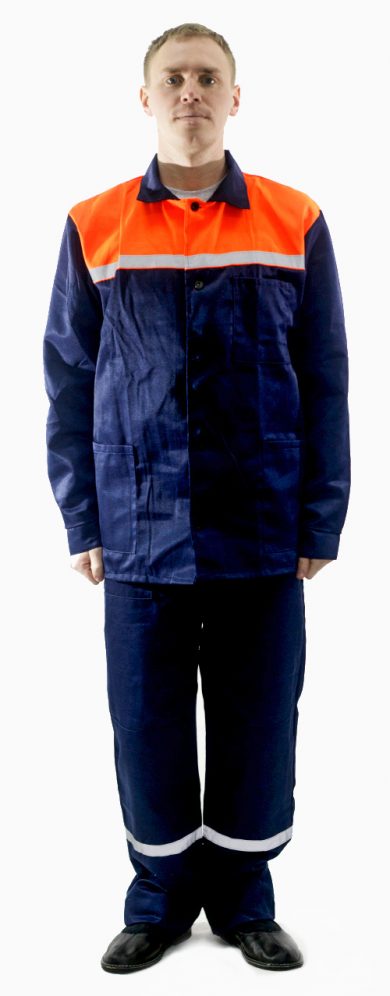 Костюм усиленный «СТАНДАРТ-2» куртка/полукомбинезон, тёмно-синий с оранжевой отделкой