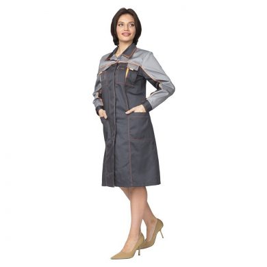 Халат рабочий женский «ТЕХНОЛОГ»- тёмно-синий/василёк