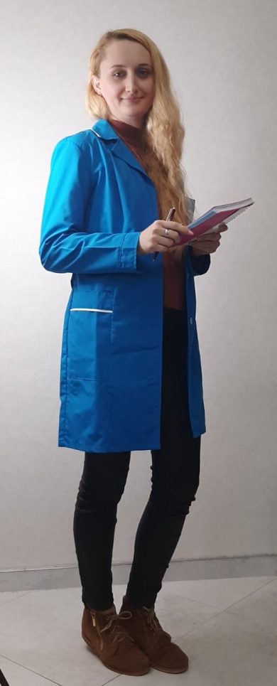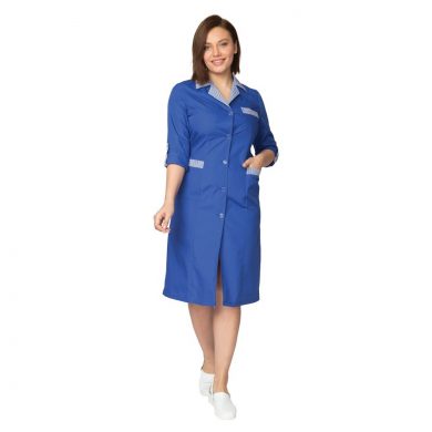 Халат рабочий женский «ТЕХНОЛОГ»- василёк/тёмно-синий