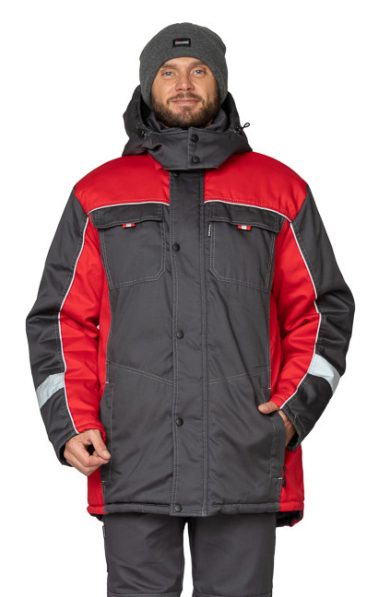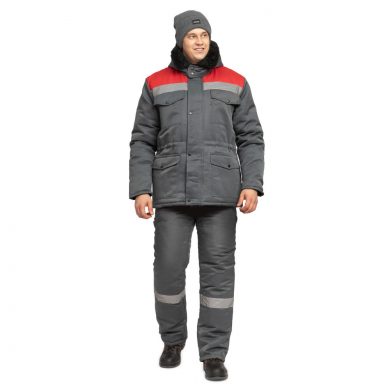 Костюм мужской «Мастерок 2» (куртка+полукомбинезон) серый/красный